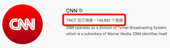 CNN的粉丝,倒是和李子柒差不多,但他们发了146882个视频,是李子柒的1400倍。