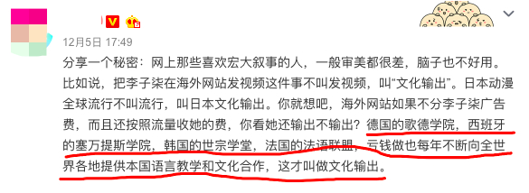 但偏偏有人出来说,她的目的是为了赚钱,真正的文化输出,得是那种亏钱也去向全世界传播的。