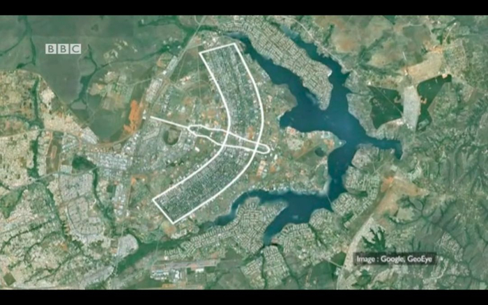 从空中看,这座城市像是一架飞机,机翼是巴西利亚官员们居住的场所,机身则是崭新的政府部门所在。