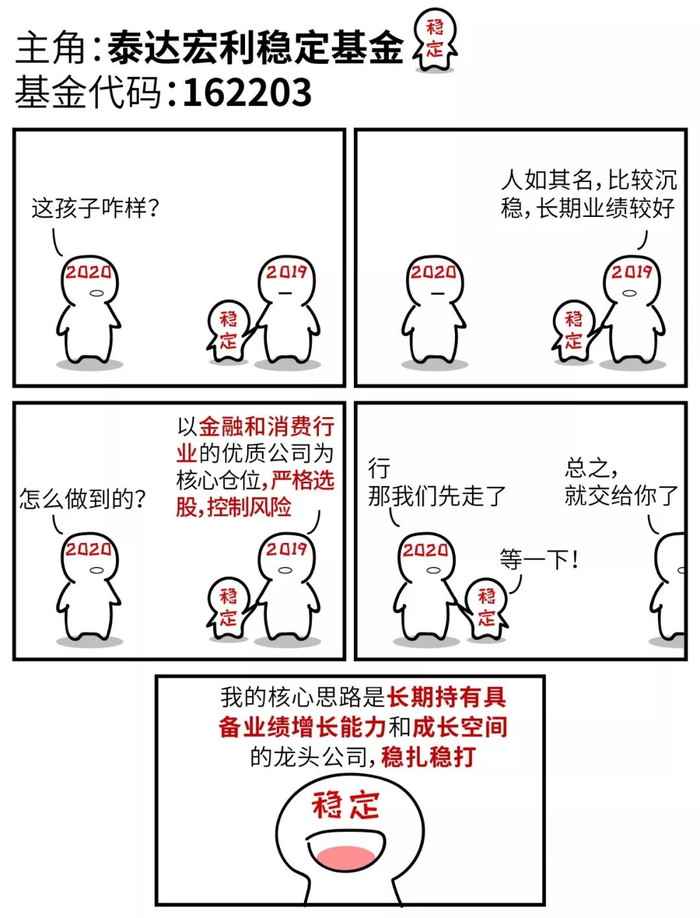 4.泰达宏利稳定成立于2003年4月25日,2009年、2010年、2011年、2012年、2013年、2014年、2015年、2016年、2017年、2018年、2019年上半年的业绩分别为42.03%、5.99%、-17.00%、8.40%、12.90%、36.79%、8.38%、-22.03%、35.98%、-18.91%、36.77%,同期业绩比较基准分别为52.68%、-11.15%、-9.58%、6.64%、-0.73%、38.13%、2.35%、-5.20%、11.23%、-12.22%、20.77%。