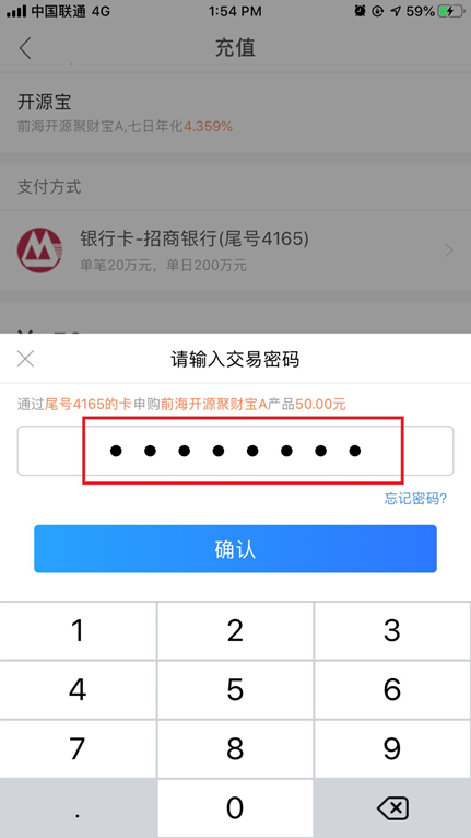 二、开源宝充值,选择支付方式,输入具体的充值金额,输入交易密码。
