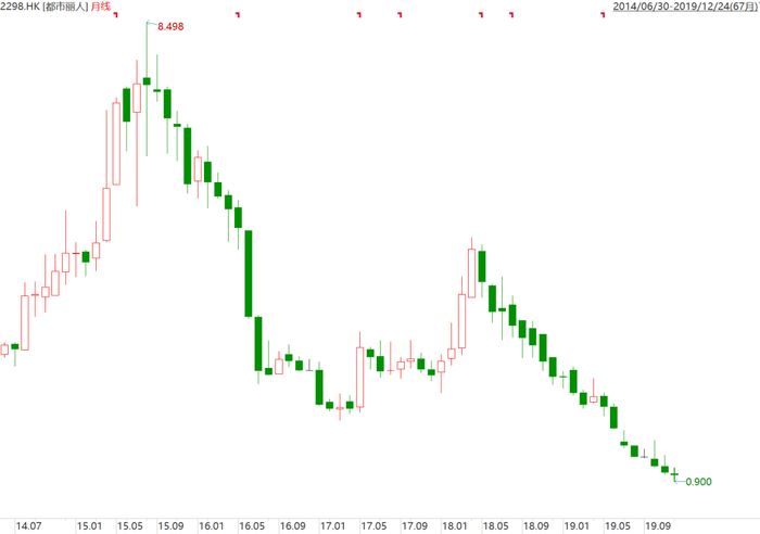 在业绩崩塌的同时,都市丽人的股价亦一路向南。其在2015年8月,股价创下历史最高点8.5元/股,而业绩巨亏预告披露后,股价一度跌至0.92元/股,期间的最大跌幅超89%,总市值仅剩22.7亿港元。