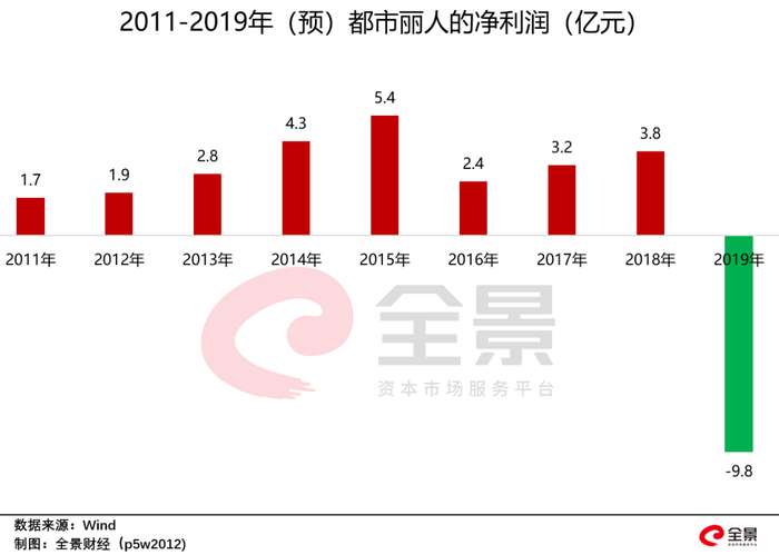 12月23日,都市丽人披露2019年业绩预告,预计2019全年净利润将亏损不少于9.8亿元。而回顾都市丽人近9年以来的业绩,2019年巨亏9.8亿元,实属罕见: