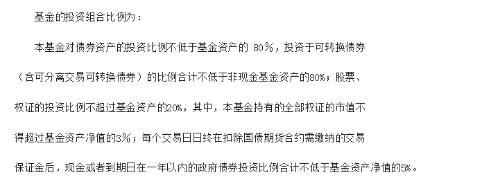 下面我们拿虽然成立时间不长,但是业绩表现不俗的中欧可转债作为对比来看一下。照例,先找到《招募说明书》,看看合同规定的资产配置比例。