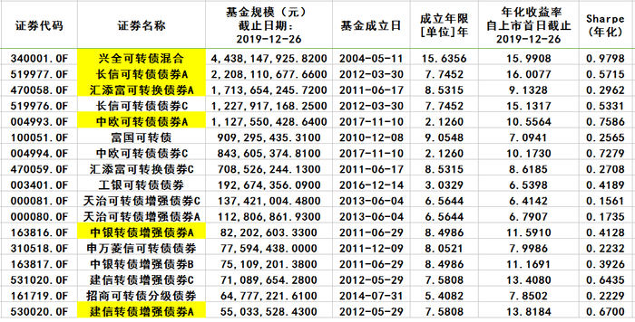 通过CHOICE软件,拉了一下含“可转债”3个字的基金。选择长期历史业绩优秀的标的大概率不会犯错;