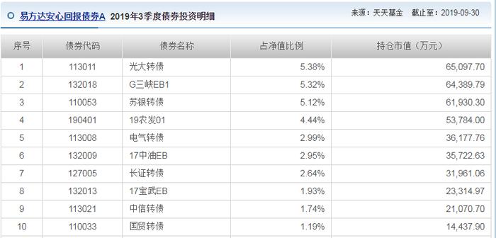最后,需要提醒的是,有些基金名称里没有“转债”字样,但是持仓中却含有不少转债,例如:易方达安心回报。