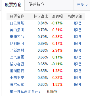 一共持有30个债券,并且前十大持仓占比非常集中。而中欧的股票持仓是这样的,主要为白马风格。