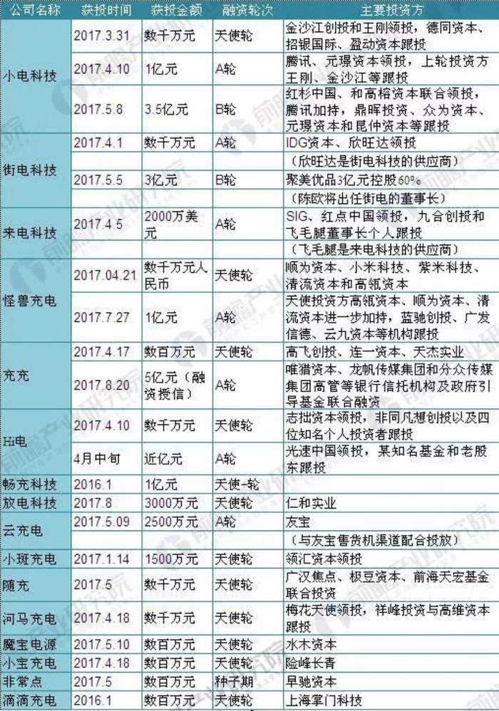 (上表格来源:前瞻产业研究院。注:上表的“云充电”实际是“云充吧”;“非常点”实际是“非常电”)