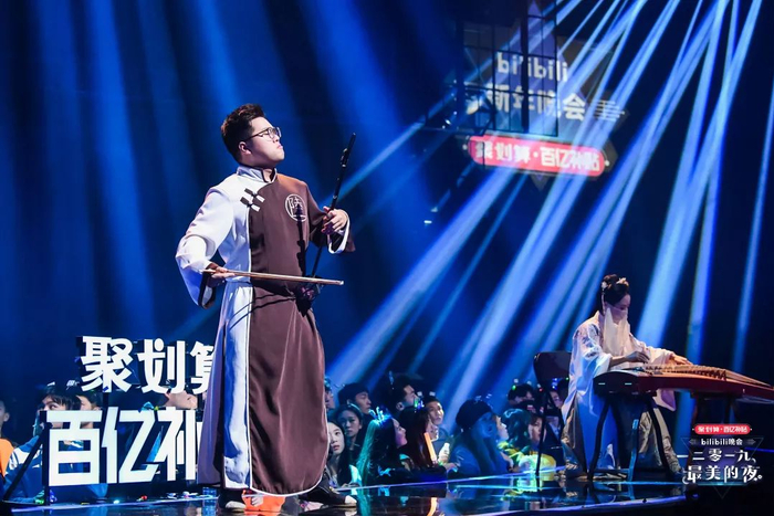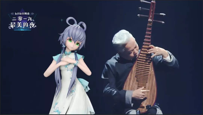 违和感三个字也从来不适用于B站,既然林黛玉×伏地魔、腾格尔×花泽香菜都可以,那么这次晚会中虚拟歌手洛天依和中国著名五弦琵琶演奏家方锦龙合作《好一朵美丽的茉莉花》也就不奇怪了,洛天依首次弹奏古筝,打破边界,带来科技与传统之美。
