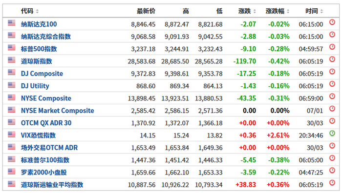 美国三大股指期货全线下跌,其中道琼斯30指数期货一度大跌400点,但随后跌幅收窄,截至发稿,道琼斯30指数期货跌24点,跌幅0.09%,美国标普500指数期货涨0.15%,纳斯达克100指数期货涨0.15%