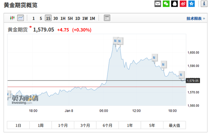 纽约黄金期货在突破1600美元/盎司后回落。目前报1579.25美元/盎司,涨0.3%。