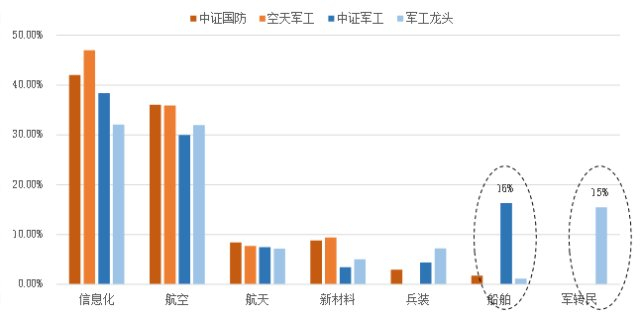 市场主流军工指数成分股子行业分布