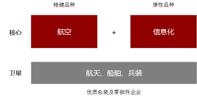 基于子行业景气度的视角,中证国防指数的整体选股思路为:航空为盾,信息化为矛。航空板块具备业绩稳健增长的特征,是装备制造产业中流砥柱;而信息化为政策受益的方向,长期具备向上的空间,短期可以增强指数弹性。优选航天、兵装和船舶板块优质总装及零部件上市公司,确保子行业覆盖的均衡性。