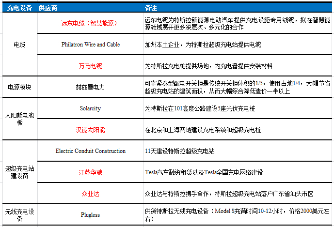 ▼ 特斯拉充电设备供应商一览