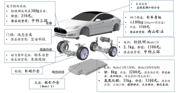 ▼ 特斯拉单车对应上游原材料一览