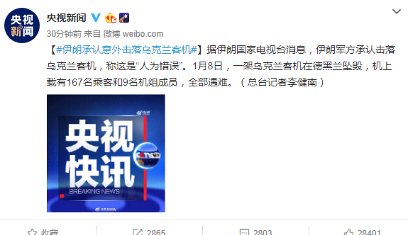 今天(1月11日)事件终于真相大白。据央视新闻报道,伊朗军方发表声明,证实此前的乌航客机是被伊朗意外地人为击中。
