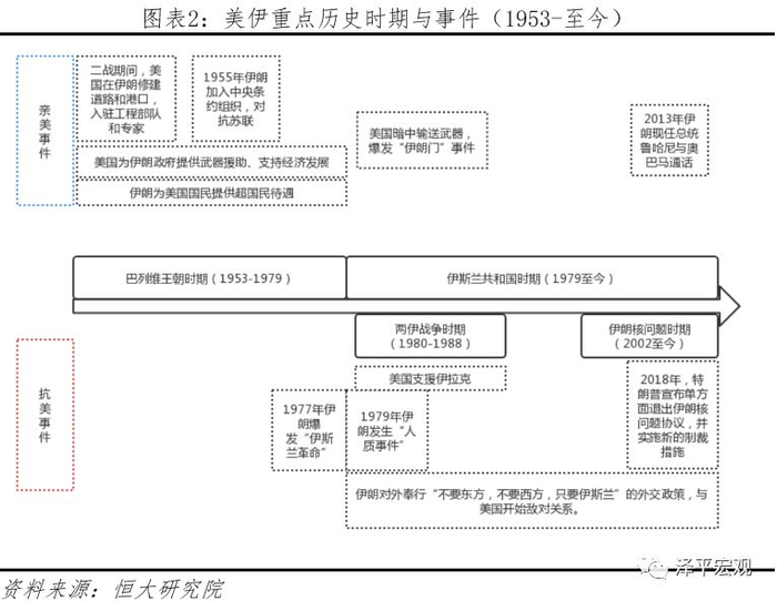 巴列维王朝时期,美伊关系亲密,双方利益捆绑实现双赢。1953年美国扶持小巴列维上台,伊朗选择与苏联敌对,冷落英国,亲近美国。伊朗不满苏联支持阿塞拜疆、库尔德等伊朗敌对国,因此疏远苏联。同时,伊朗政府实施石油企业国有化,把原本被英国控制的石油公司收为国有,引发英国不满。美国为对抗苏联,并获取伊朗的石油资源和地缘优势,大力扶持小巴列维王朝。美伊甜蜜时期双方实现了共赢。例如,伊朗通过复制美国的产业政策,实现了经济腾飞,1968-1978年间伊朗经济年均增速达16%-17%,国民收入增加超过十倍。美国通过邀请伊朗加入中央条约组织,增强了反苏军事实力。