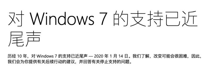 自 2020 年 1 月 14 日起,微软将不再为此系统提供软件更新和安全更新修复,但用户依然可以使用 Windows 7 系统。