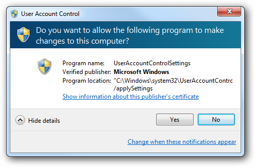 让 Windows Vista 用户不堪其扰的 UAC 功能,也被 Windows 7 继承了下来。这个功能的目的是阻止恶意程序损害系统,在用户安装软件、配置系统变化和发生其他变更时,会不断弹窗询问是否要这样做。