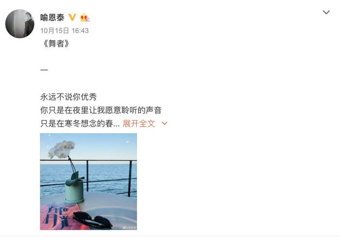 喻恩泰是最有资格秀学历的,可是翻遍他的微博,几乎没有晦涩的学术与论文,也没有各种证书,有的只是自己对于生活的见解。