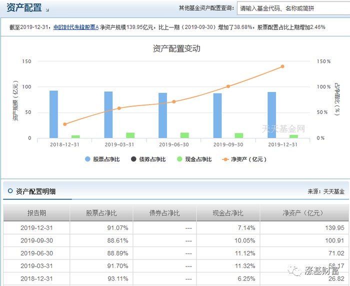 从资产配置明细来看,光中欧时代先锋股票A这只基金在2019年规模就增长了好几倍。股票持仓更是高达91.07%!
