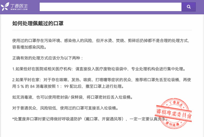 同时,我们也要学会正确地处理废弃口罩。这里我们放上丁香医生给出的处理方法,供你参考。