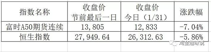 从现在富时A50期货价格的走势和恒生指数节后一周的表现看,市场的反映还是相当理性的。富时A50期货合约从1月23日至今下跌了7.04%。而恒生指数在春节开始后的三个交易日,累计下跌5.86%。