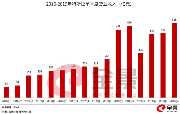 据财报数据显示,2019年第四季度,特斯拉实现营业收入73.8亿美元,同比增长2.2%,环比大幅增长超17.2%,创下历史记录,亦明显高出市场一致性预期的70.5亿美元。