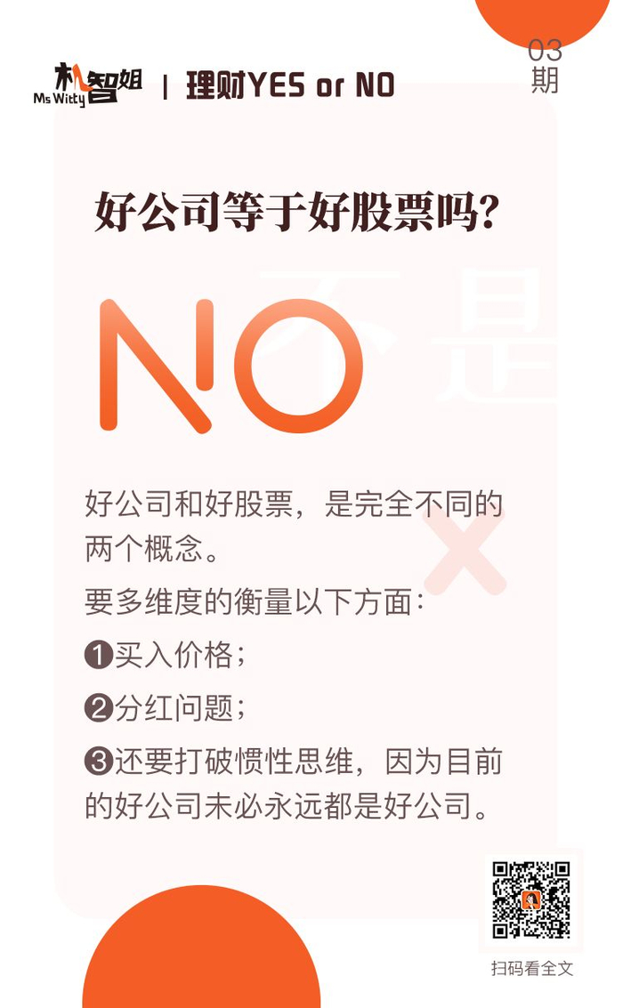 A股“粉丝”不断增持,市场情绪高涨。可面对“遍地黄金”的A股市场,姐对入市不久的投资者心存担忧,毕竟做投资不是“捡白菜”,如何挑选优质标的是件有门槛的事。比如很多人就分不清“好公司和好股票”的区别,以为好公司就是好股票。可结果恰恰相反。机智姐本期就跟大家讨论一下,其实,好公司≠好股票!