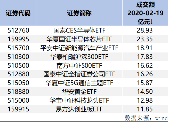 ▼附图:2月19日成交额靠前的ETF基金(非货币)