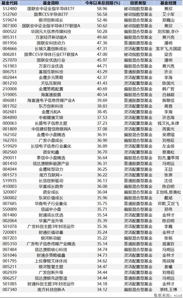 年内基金最高涨幅近60% 去年冠军刘格菘跌出前20(表)