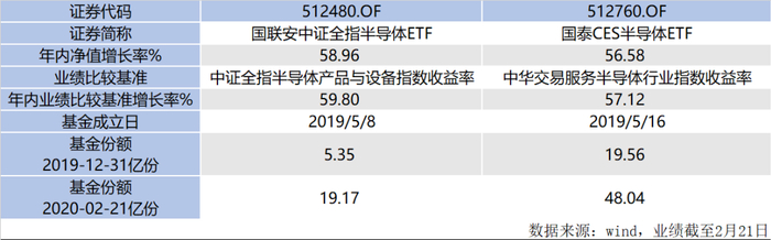 国联安中证全指半导体ETF跟踪的是中证全指半导体产品与设备指数,国泰CES半导体ETF跟踪的是中华交易服务半导体行业人民币指数。