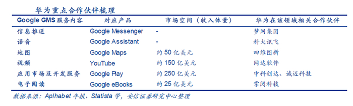 根据欧盟反垄断部门调查文件内容,欧盟认为谷歌通过 GMS 服务构成了垄断竞争,因而在 2018 年给出高达 43.4 亿欧元的罚单。同时,如不结束这一行为,谷歌将面临平均 5%日营收的罚款。作为反制,谷歌公司决定对欧洲地区手机厂商搭载GMS收取40美元/台的 OEM 授权费用。因而,欧盟地区对替代 GMS 的移动端服务具有很强的需求。