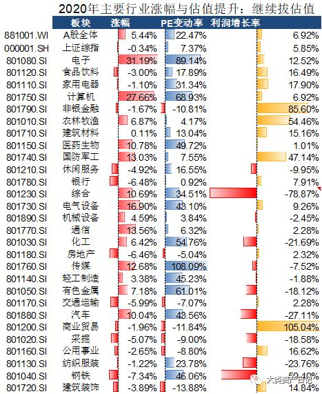 2、2020年数据:继续聚焦几个行业拔估值