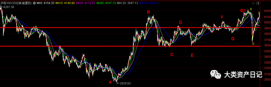 (1)主级别趋势来看,沪深300整体走势框架类同于上证综指,也是围绕日线级别的中枢震荡,即围绕(下沿=3557.02,上沿=4030.64)进行上下波动,日线级别暂时未出现趋势上涨的信号。本级别走势强度仍然略高于上证综指。