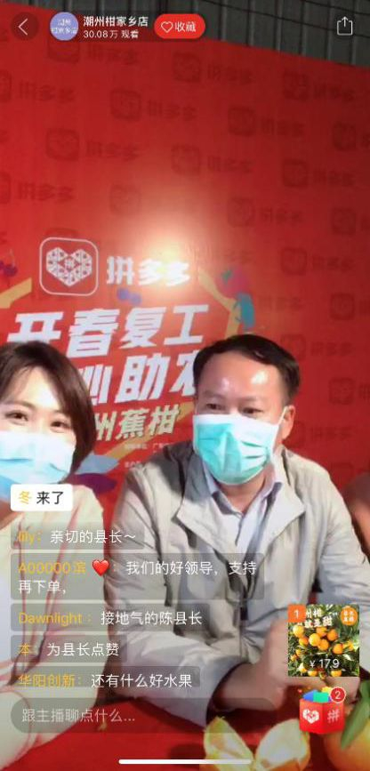 “不能让农民受损失”,面对这样的情况,饶平县政府积极采取措施,帮助饶平种植户创新销售模式。作为县长的陈跃庆,也主动承担“重任”——到拼多多助农直播间向平台5亿消费者推荐美味的潮州柑,同时,带动本地农产品建立网络上行的新模式。