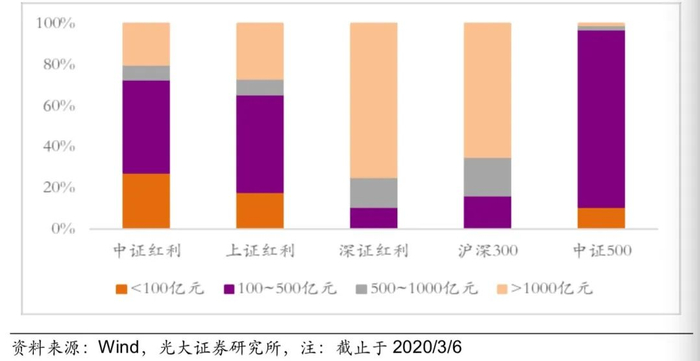 与宽基指数、同类策略指数进行比较,中证红利指数的市值分布相对更加均匀、流动性好、宽基覆盖面广。
