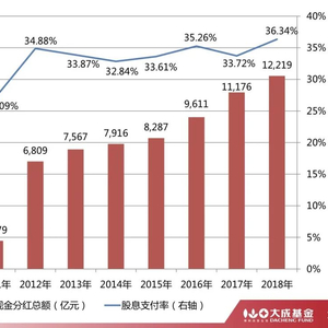 A股上市公司现金分红金额2017、2018连续两年超过万亿元,股息率从2014年的1.85%增加到2018年的2.4亿,已经与标普500指数道琼斯工业指数大体相当。(数据来源:wind)