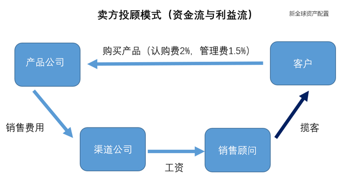 卖方模式:代表机构销售产品,收取机构佣金分成