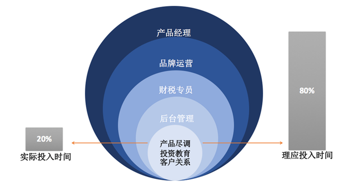 在TAMP帮助下,投顾们能显著提升工作的产出比与附加值。以往投顾80%的精力用在了低附加值的、重复劳动型的运营项目上,只剩下20%的精力,是在开拓客户、维护客户关系上。现在则可以反其道而行之!