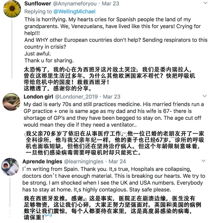推特上,一位西班牙医生饱含热泪,向全世界讲述着马德里正在经历的一切: