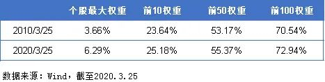 ● 成分股权重呈现集中趋势:十年前,权重最大成分股为招商银行,占比3.66%,十年后权重最大成分股为中国平安,占比6.29%,这种成分股权重集中的趋势同样出现在前10、前50、前100大成分股中,说明沪深300成分股权重集中度上升,龙头效应增加。