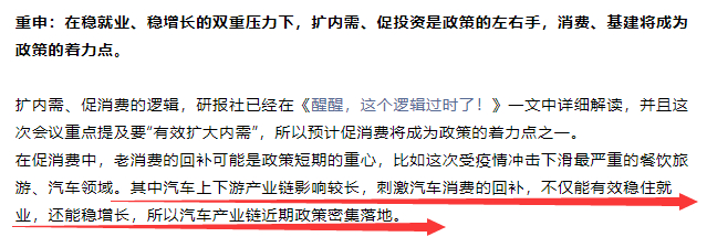 研报社解读:关于汽车的政策预期,研报社早早提示,并且在周日文章中再次重点提示: