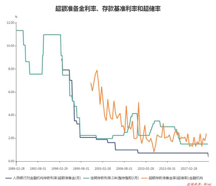图2 超额准备金利率、存款基准利率和商业银行目前的超额储备水平
