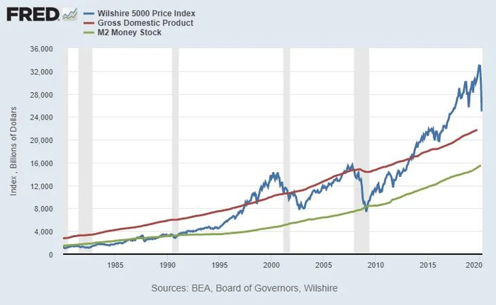 以下是最新图表,显示了美国股市、美国国内生产总值和美国广义货币供应量:
