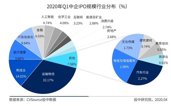 2020年Q1,运输物流股IPO规模力拔头筹,北京地区成为本月IPO最吸金地区,上交所主板IPO规模稳居榜首。