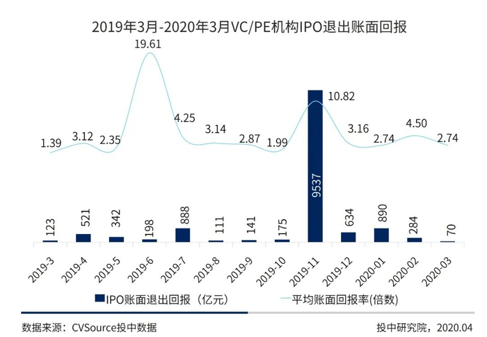 图表15 2019年3月-2020年3月VC/PE机构IPO退出账面回报