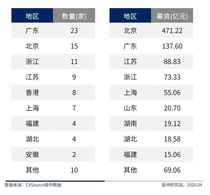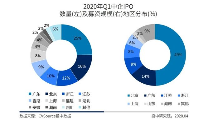 图表 13 2020年Q1中企IPO数量及募资规模地区分布