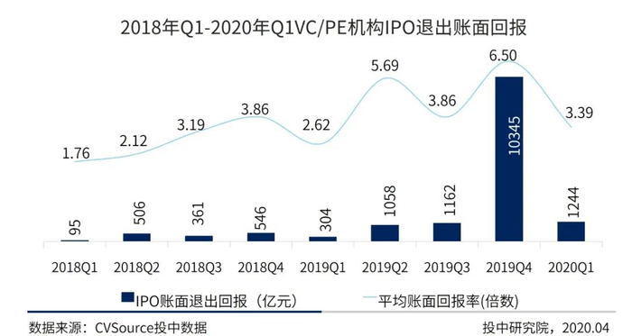 图表14 2018Q1-2020年Q1VC/PE机构IPO退出账面回报