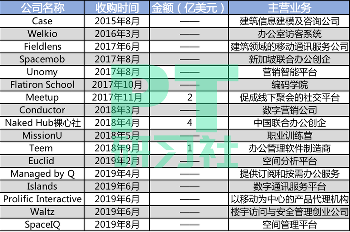 (对于WeWork投资收购感兴趣的同学,可以查看这篇文章:《翻完WeWork招股书,我们发现这个世界还是1950年的人说了算》)